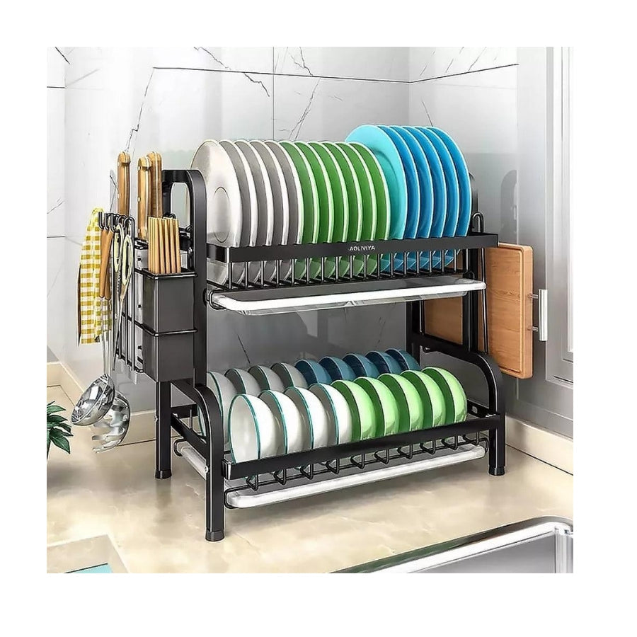 Gracias a su diseño de 2 niveles y compartimentos adicionales, podrás almacenar no solo platos, sino también utensilios, vasos, tazas y mucho más. Este organizador es ideal para optimizar el espacio y mantener todo en su lugar, desde cuchillos hasta tablas de picar.